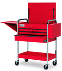 4 Drawer Red Service Cart with Lid; Rack & Tray