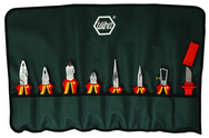 •Set Includes: Insulated 6.3" Long Nose Pliers, 6.3" & 9" Lineman's Pliers, 6.3" Wire Stripping Pliers, 8" Long Nose Pliers, 6.3" Diagonal Cutters, 8" High Leverage Cutters, Knife in Roll Up Pouch