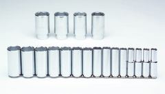 •Set Includes: 19-1/4" Drive 6PT Deep Socket: 4, 5, 6, 7, 8, 9, 10, 11, 12, 13mm 3/16, 7/32, 1/4, 9/32, 5/16, 11/32, 3/8, 7/16, 1/2, 23-1/4" Drive 6PT Socket: 4, 5, 5.5, 6, 7, 8, 9, 10, 11, 12, 13, 14mm, 5/32, 3/16, 7/32, 1/4, 9/32, 5/16, 11/32, 3/8, 7/16, 1/2, 9/16 -4