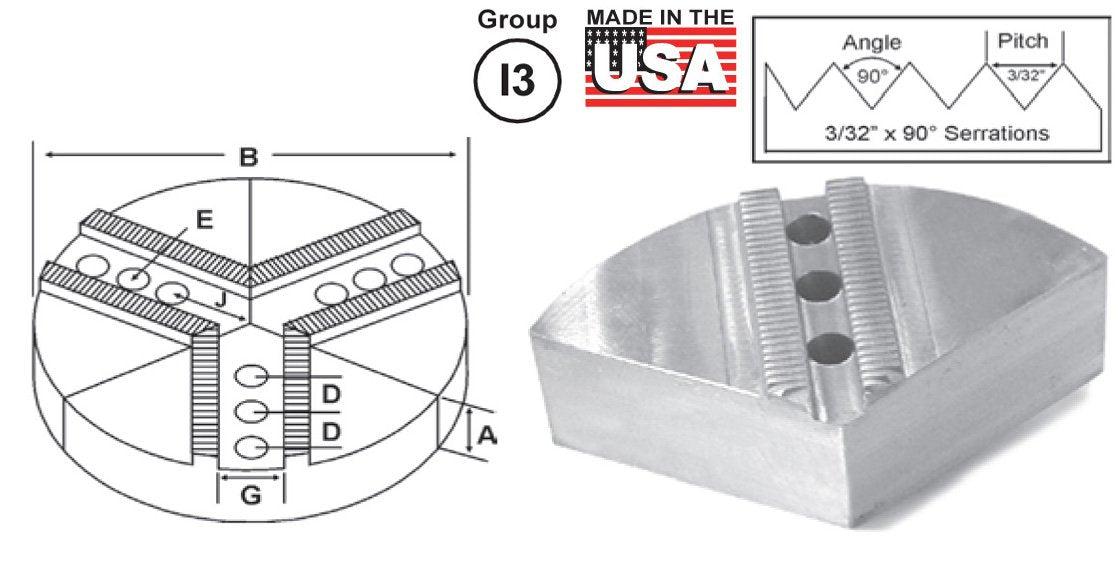 Round Jaw Material: ALUMINUM-6061-T6 Bar Stock, CAST IRON-Gray, STEEL-1018. 18" & Larger- Aluminum Casting T6
