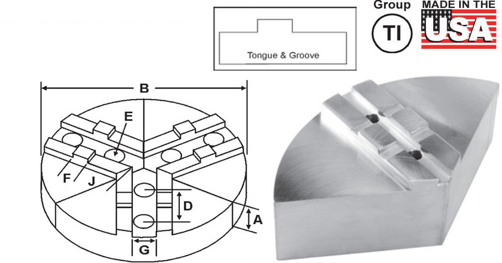 Round Jaw Material: ALUMINUM-6061-T6 Bar Stock, CAST IRON-Gray, STEEL-1018. 18" & Larger- Aluminum Casting T6