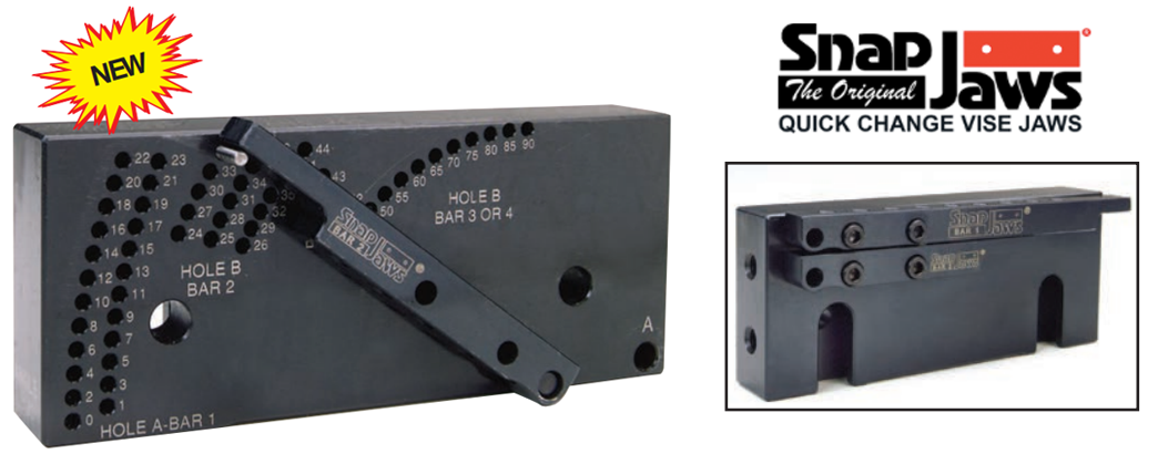 Included in set is one angle jaw, one Rock Jaw, 4 steel bars, stop screws, dowel pins, and mounting screws.