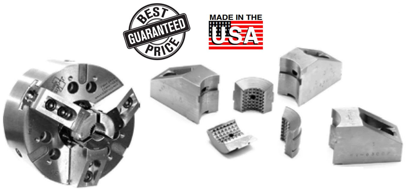 Collet Pad Top Jaws can be configured to fit most 3 jaw chucks that use soft top jaws, regardless of the lock type (Serrated or American Standard). Please call if you do not see your chuck listed below.