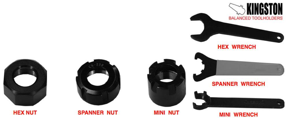 ER Collet Nuts (ER Collet Wrenches in Chart Below) | |||||||
