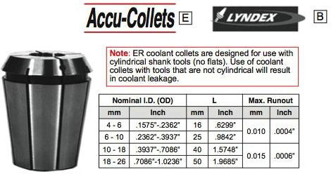 ER 16 Coolant Collets