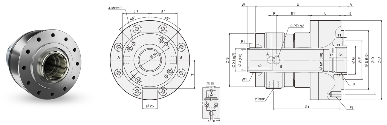 - Compact hydraulic cylinder design with light weight can reduce the spindle loading while running in high speed.