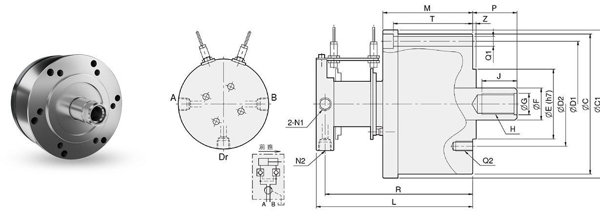 • Light weight design can reduce the spindle loading for vertical lathe application.