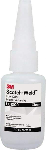 3M - 0.71 oz Bottle Clear Instant Adhesive - Series Part Number LO1000, 20 to 70 sec Working Time, 24 hr Full Cure Time