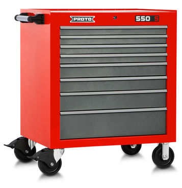Proto® 550S 34" Roller Cabinet - 8 Drawer, Safety Red and Gray