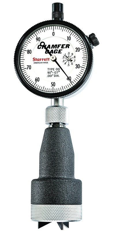 •When the three-blade plunger is pressed against a flat surface, the gage should read the set number stamped on the back of the indicator •No setting master is necessary •Internal gages will measure the largest diameter of any chamfer that has an included angle within the range of angles printed on the dial face •Gages are also available with electronic indicators on request •Deluxe padded case •All ground surfaces are of hardened tool steel •Indicators are AGD design